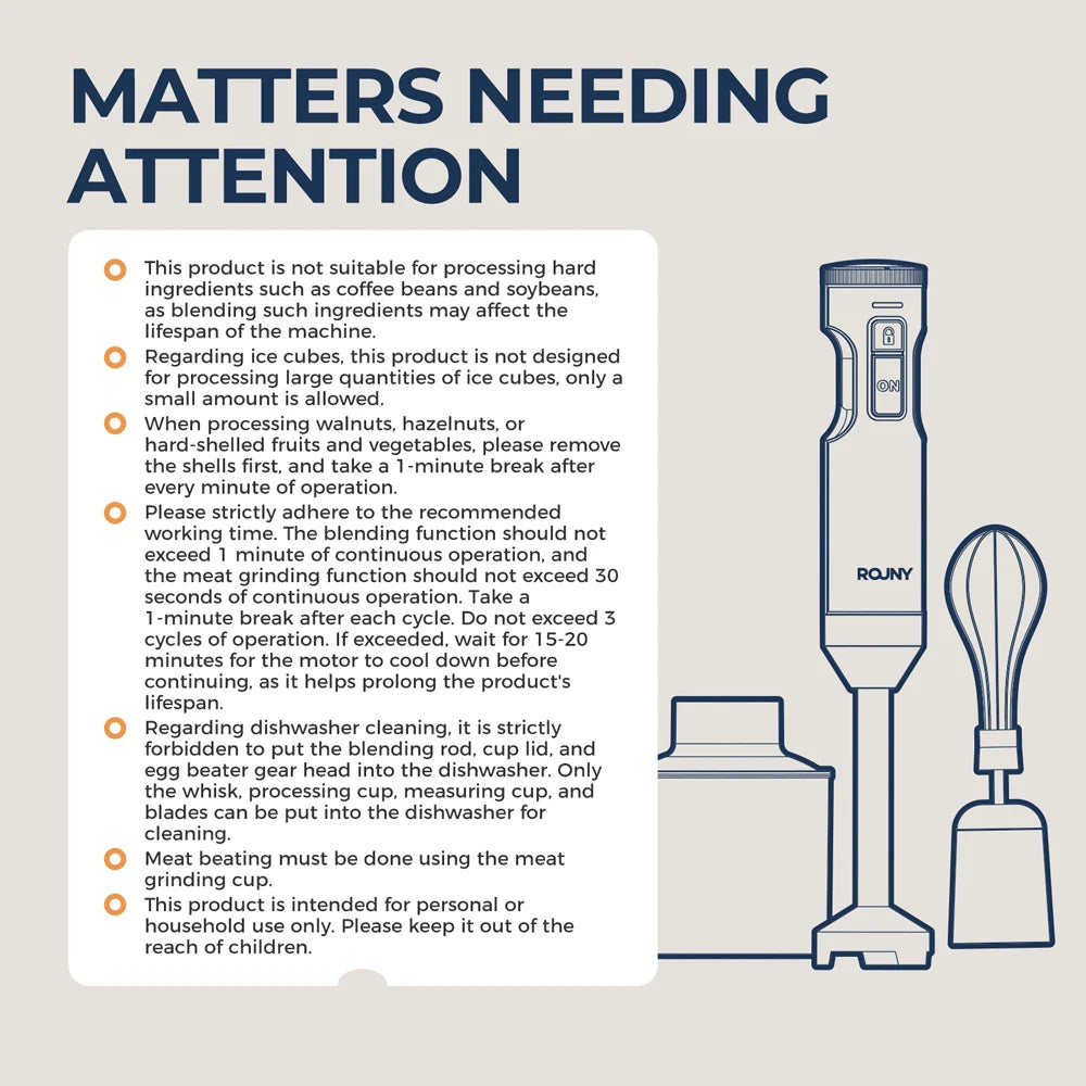 Hand Immersion Blender 1000W Powerful 4-in-1