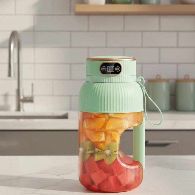 Digital Display Fruit Blender Bottle in Modern Kitchen